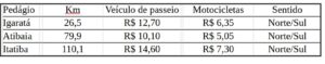 Confira os novos valores das tarifas de pedágio na rodovia Dom Pedro I: