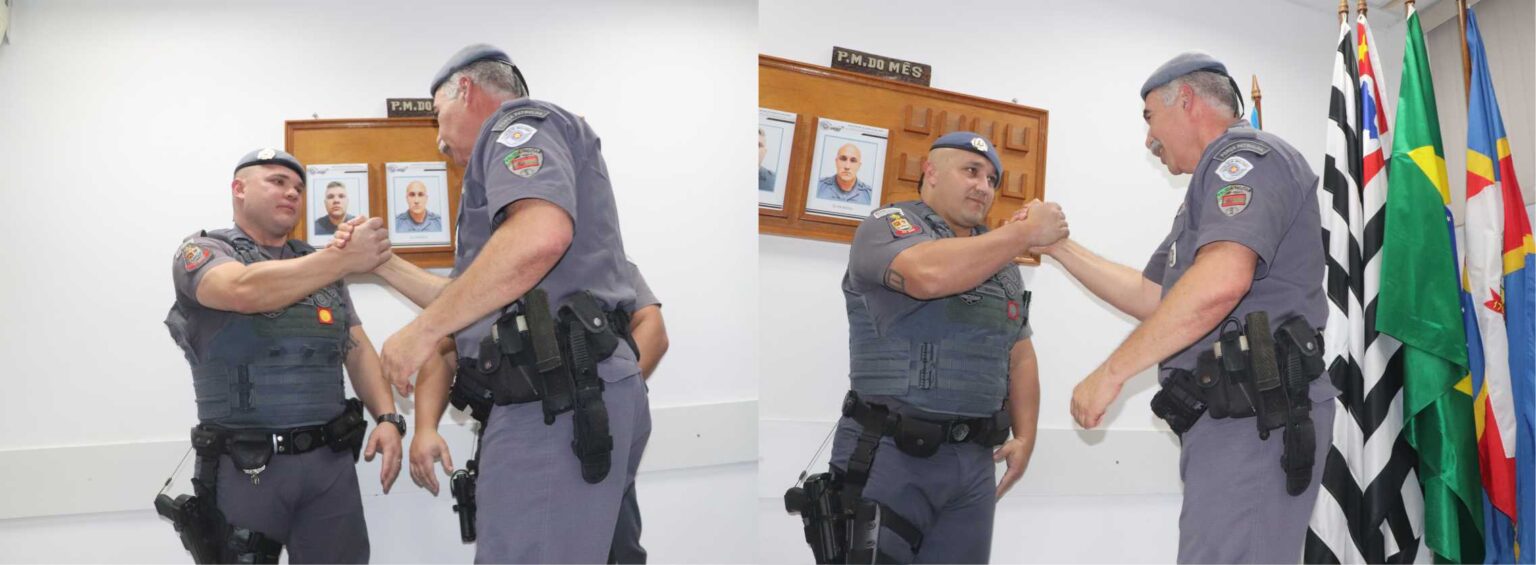 Na solenidade “PMs do Mês” de junho, na quinta-feira (10), em Atibaia, o Comandante do 34º BPM/I Tenente-Coronel PM Maurício Gomes esteve presente e parabenizou a atuação na cidade dos Policiais Militares Cabo Leandro e Soldado Badiali.