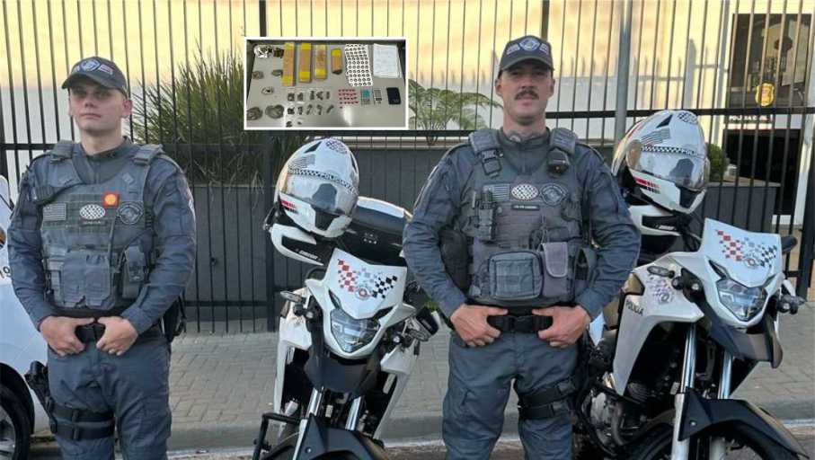 Os Policiais Militares da Equipe de Radiopatrulhamento com Motocicletas (RPM), Soldado Filipi e Soldado Gabriel, apreenderam grande quantidade de entorpecentes neste sábado (19), em Atibaia. Um homem foi preso.