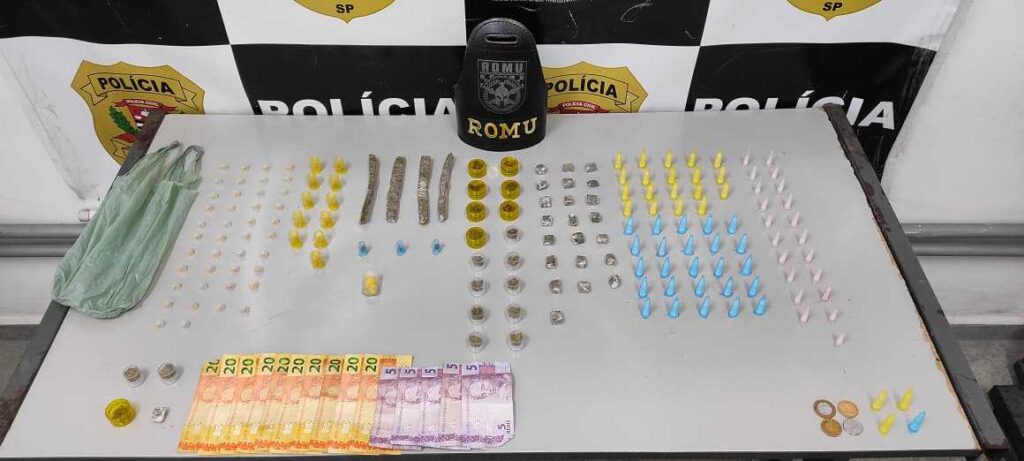 Na sacola foram encontrados diversos tipos de entorpecentes prontos para a venda. O primeiro abordado e que havia dispensado a sacola, estava com três tubetes de skunk e uma porção de maconha, iguais as encontradas na sacola, além de R$ 225 em notas trocadas. Com o segundo abordado, foram localizados três microtubos de cocaína. Ele alegou aos GCMs que havia comprado do primeiro abordado.