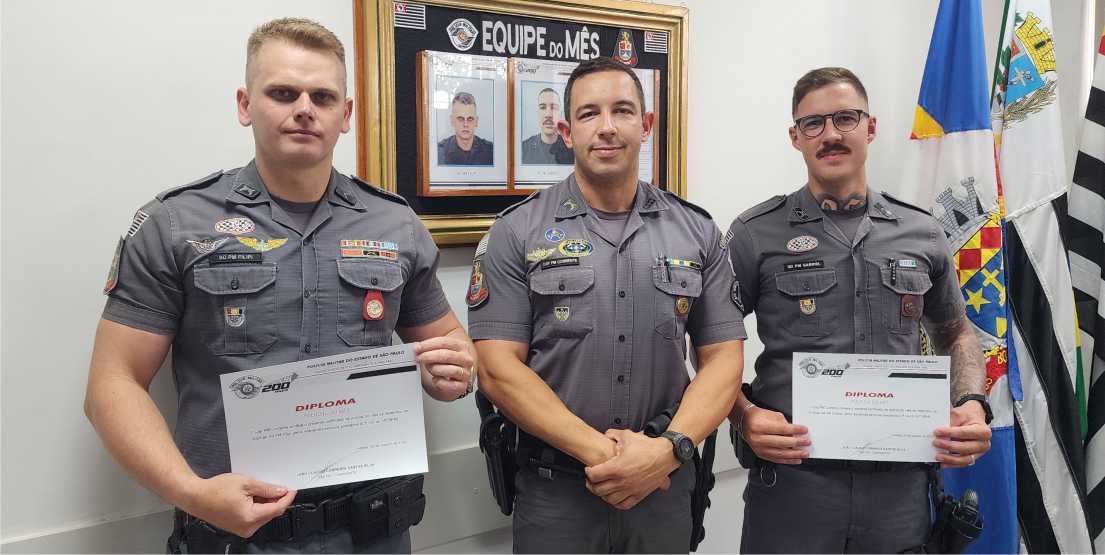 Os Policiais Militares de Radiopatrulhamento com Motocicletas (RPM III), Soldado Filipi e Soldado Gabriel, foram indicados à “Equipe PM do Mês” de setembro por apresentarem notável destaque no desempenho de suas funções no município de Atibaia, na área da Terceira Companhia de Atibaia do 34º BPM/I. A solenidade aconteceu na quinta-feira (9), na sede da Polícia Militar, em Atibaia.