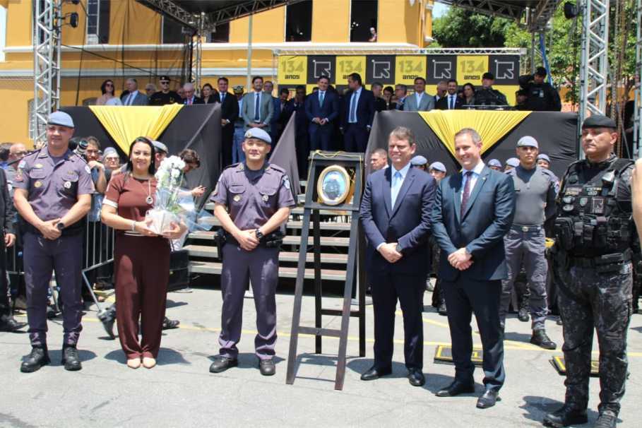 “Eu tenho orgulho imenso de ter feito parte desta história. Já falei da grandiosidade dessa unidade, da beleza desse prédio, onde em 2010 fui admitido nesse quartel com um sonho muito claro de combater o crime organizado e defender a população de São Paulo. Aprendi muito aqui, fiz muitas amizades e fui apoiado por diversos militares que estão em forma neste pátio sagrado”, disse o secretário da Segurança Pública, Guilherme Derrite.