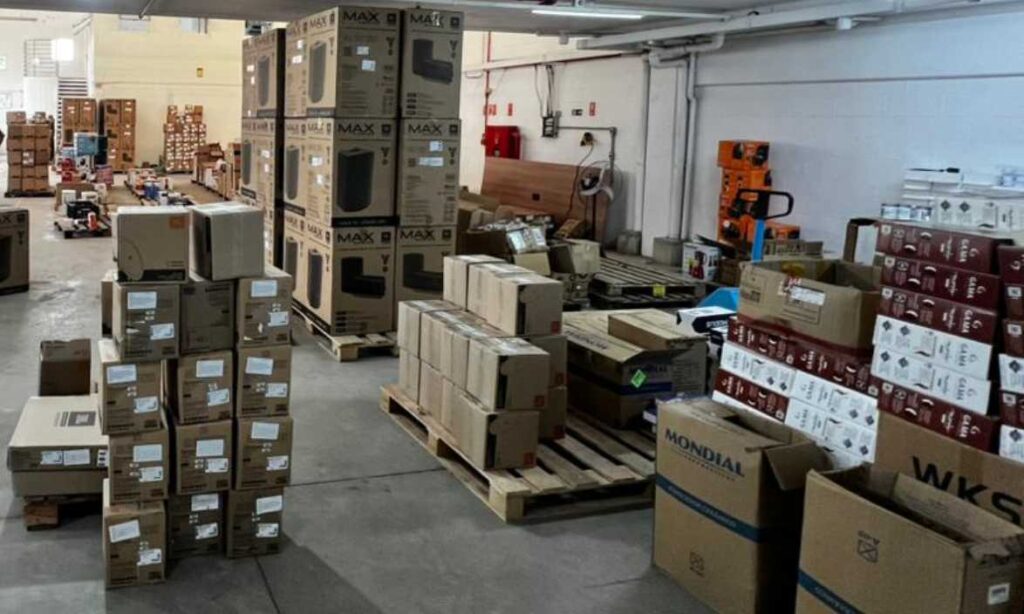 No local, os policiais abordaram um homem que saía do galpão e se identificou como motorista de uma empresa de e-commerce que funcionava no endereço, autorizando a entrada das equipes.