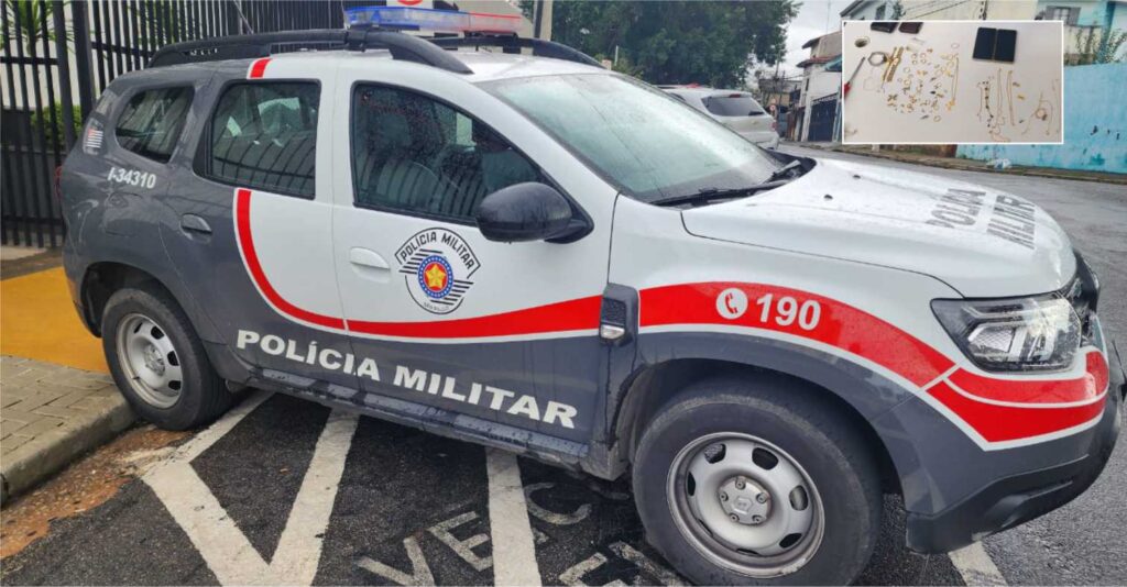 Dentro do carro havia dois ocupantes. De acordo com os policiais, foi realizada a busca pessoal e localizadas joias em suas roupas. Ao serem questionados pela Equipe, disseram que as joias eram provenientes de furtos. Informaram ainda que vieram de Jundiaí para cometer os crimes em casas de alto padrão de Atibaia.