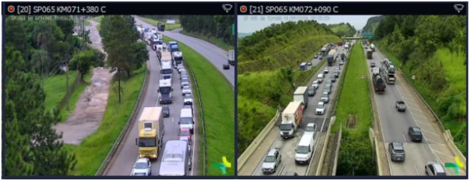 Já no anel viário Magalhães Teixeira (SP-083), o fluxo de veículos é elevado na pista sentido Rodovia Dom Pedro I, principalmente a partir do Trevo de Valinhos.