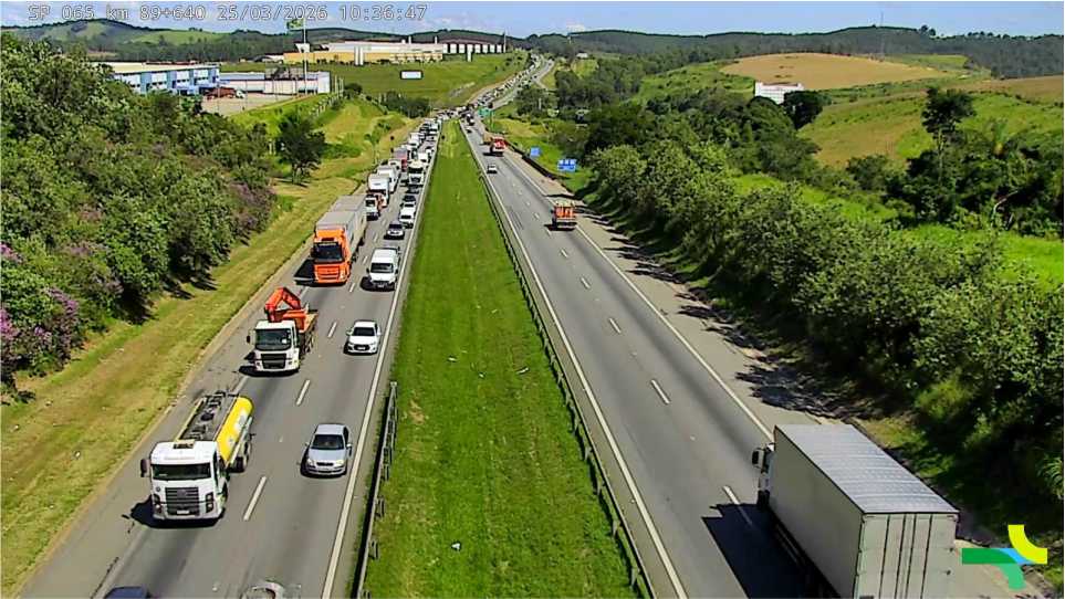 Os motoristas que trafegam pela rodovia D. Pedro I (SP-065), no trecho entre Jarinu e Atibaia, enfrentam cerca de 2 quilômetros de lentidão na pista Sul, no sentido Jacareí, na manhã desta quarta-feira (25).