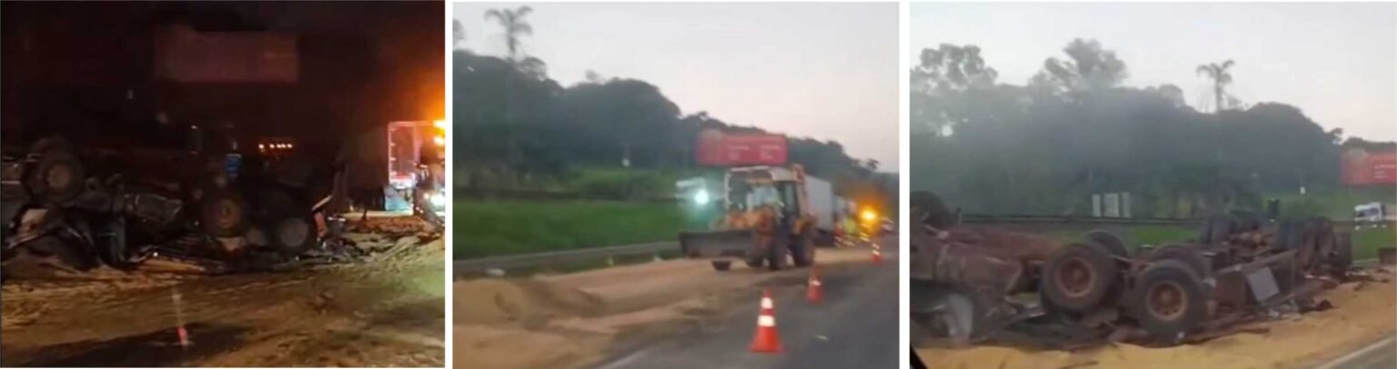 Um acidente entre duas carretas na madrugada de hoje (20), no km 23 da rodovia Fernão Dias. em Bragança Paulista, deixou três pessoas feridas, uma em estado grave, de acordo com a Polícia Rodoviária Federal.