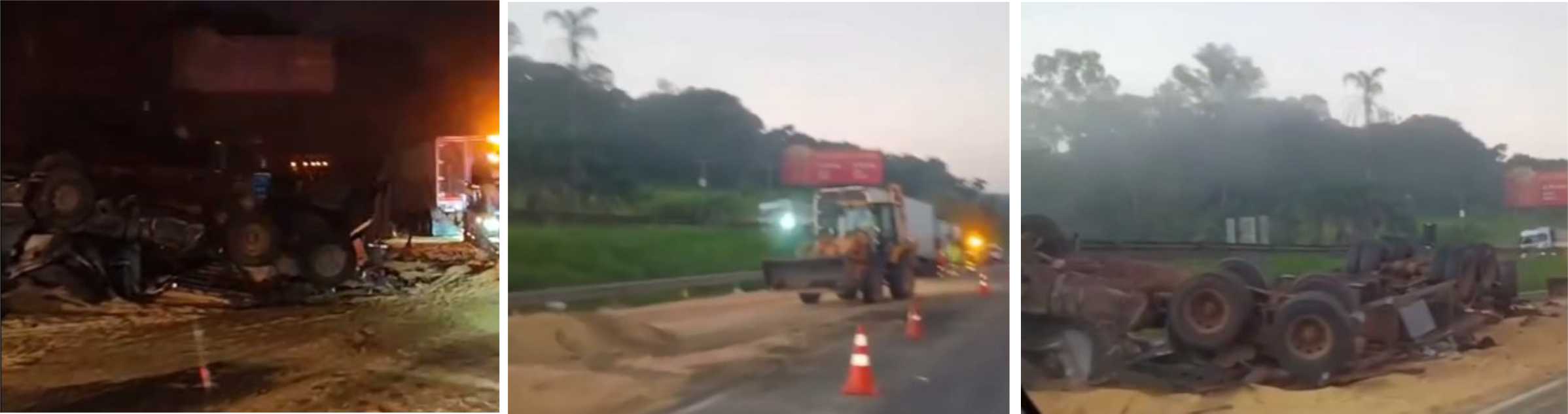 O Centro de Controle Operacional da Motiva Minas_SP foi acionado às 2h39 para atendimento de ocorrência de tombamento de uma carreta carregada com soja, que se espalhou pela pista. Na sequência, uma segunda carreta colidiu no local.